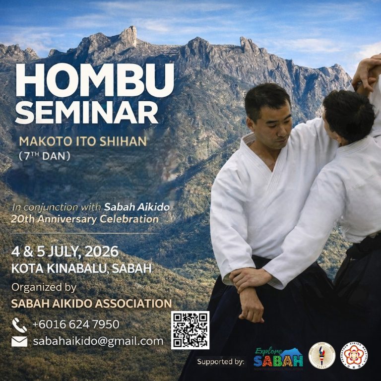 Join us! This time in Kota Kinabalu, Sabah for Hombu Seminar 2026 with Makoto Ito Shihan (7th Dan), held in conjunction with 20th Anniversary Celebration for Sabah Aikido.